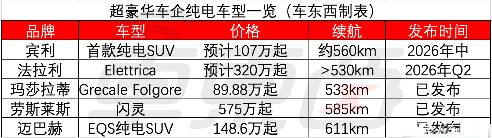 目前,迈巴赫、劳斯莱斯、玛莎拉蒂等超豪华品牌也都陆续推出纯电车型,法拉利纯电车型也即将在2026年初上市。